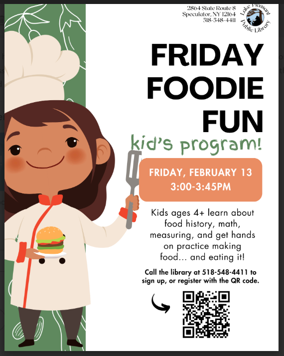 Friday Foodie Fun's time has changed from 3:00 PM - 3:45 PM to 1:00 PM - 1:45 PM due to the early dismissal at 12:30 PM.